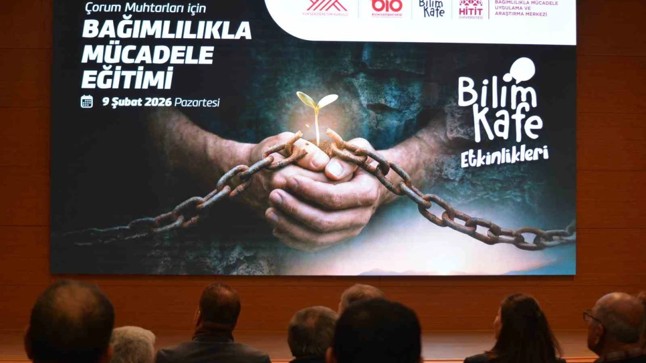 Çorum Hitit Üniversitesi tarafından mahalle ve köy muhtarlarına yönelik düzenlenen eğitimde, bağımlılıkla mücadele yöntemleri, risk faktörleri ve erken uyarı işaretleri anlatıldı.