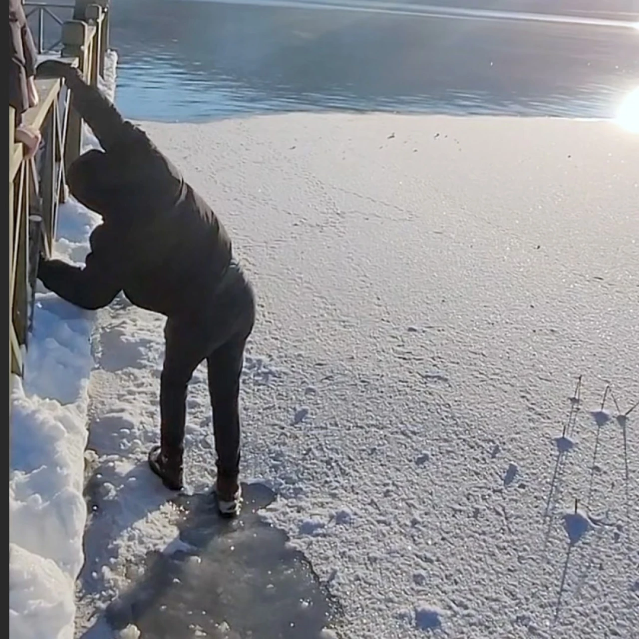 Abant Gölü Milli Parkı’na tatil için gelen ismi öğrenilemeyen bir genç, tüm uyarılara ve tabelalara aldırış etmeden donmuş göl yüzeyine çıkmak istedi. Göl kenarındaki ahşap çitlerin diğer tarafına geçen genç, korkuluklara tutunarak donmuş yüzeyde yürümeye başladı. Çevredeki vatandaşların bakışları arasında tehlikeli yürüyüşünü sürdüren genç, bir anda buzun kırılmasıyla neye uğradığını şaşırdı. Bastığı buz tabakasının aniden kırılmasıyla suya düşme tehlikesi geçiren genç, elleriyle tutunduğu çitler sayesinde buzlu suya düşmekten son anda kurtuldu. O anlar vatandaş kamerasına yansıdı.
