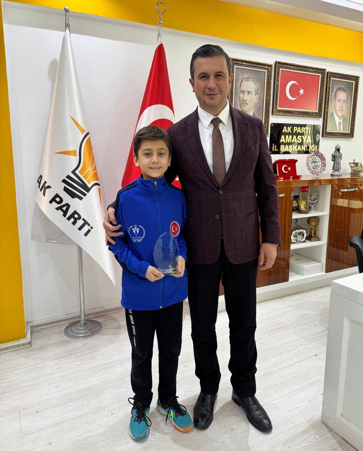 WTT Youth Contender Cappadocia Masa Tenisi Turnuvası’nda dünya üçüncüsü olan Amasya Türk Telekom Anadolu İmam Hatip Lisesi/Ortaokulu 5. sınıf öğrencisi Ömer Ayaz Yıldız, elde ettiği büyük başarıyı paylaşmak üzere Adalet ve Kalkınma Partisi (AK Parti) Amasya İl Başkanı Av. Galip Uzun'u ziyaret etti.