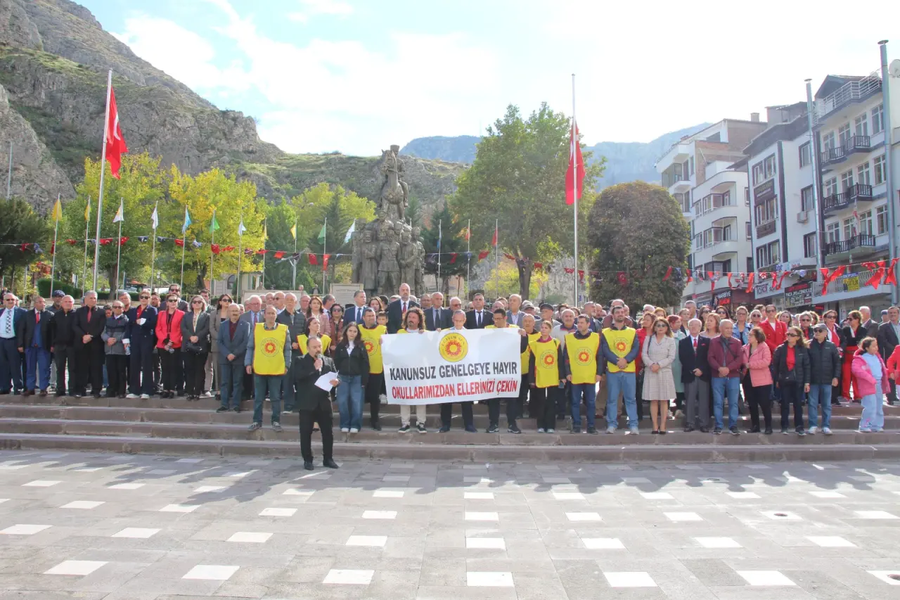 Eğitim - Sen Amasya Şubesi Yavuz Sultan Selim Meydanı’nda kanuna aykırı yapılan talimatlara yönelik basın açıklamasında bulundu.