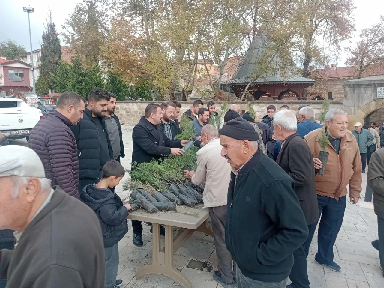 Okutulan Mevlid-i Şerif’in akabinde Merzifon Gençleri Yardımlaşma ve Dayanışma Derneği Başkanı Mustafa Koçak ile Yönetim Kurulu üyeleri tarafından katılan cemaate çam fidanı dağıtıldı.