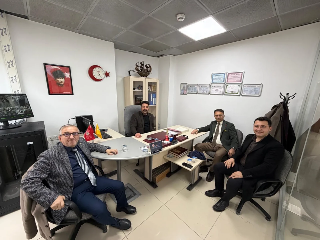 Ziyaret kapsamında, Merzifon’un bilinen esnaflarından EsGold Kuyumculuk sahibi Aykut Erhan, sanayi sektöründe faaliyet gösteren Tekman Metal Genel Müdürü Faruk Kaplan ile Muhammet Baş Merzifon PTT Müdürlüğü’nü ziyaret etti. Samimi bir ortamda gerçekleşen buluşmada, ilçeye dair güncel konular ve karşılıklı temenniler paylaşıldı.