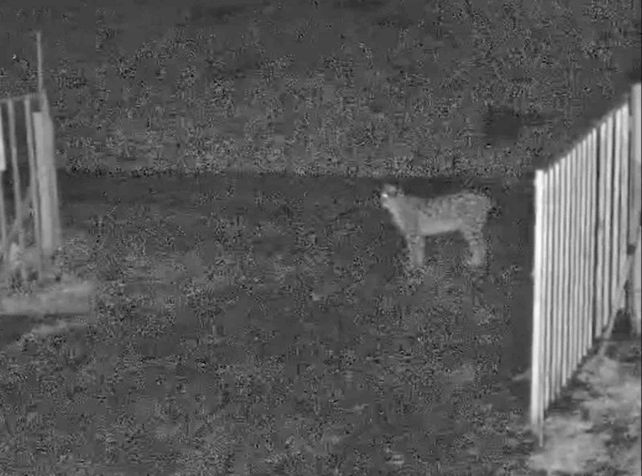 O anlar ise ilçedeki güvenlik kameralarına yasıdı. Görüntülerde, vaşağın yolda yürüdüğü ve daha sonra bir işletmenin bahçesine girdiği görülüyor. Farklı bir kameraya yansıyan görüntüde ise vaşak etrafı gözlemleyerek yürüyor.