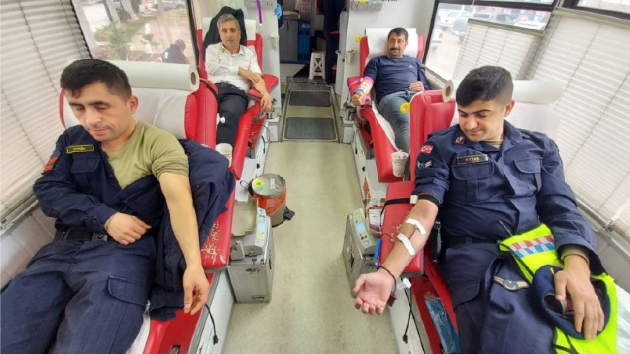 Cumhuriyet Meydanı'nda konuşlandırılan Kızılay Orta Karadeniz Amasya Kan Merkezi kan toplama aracına gelen jandarma personeli kan bağışı yaptı.