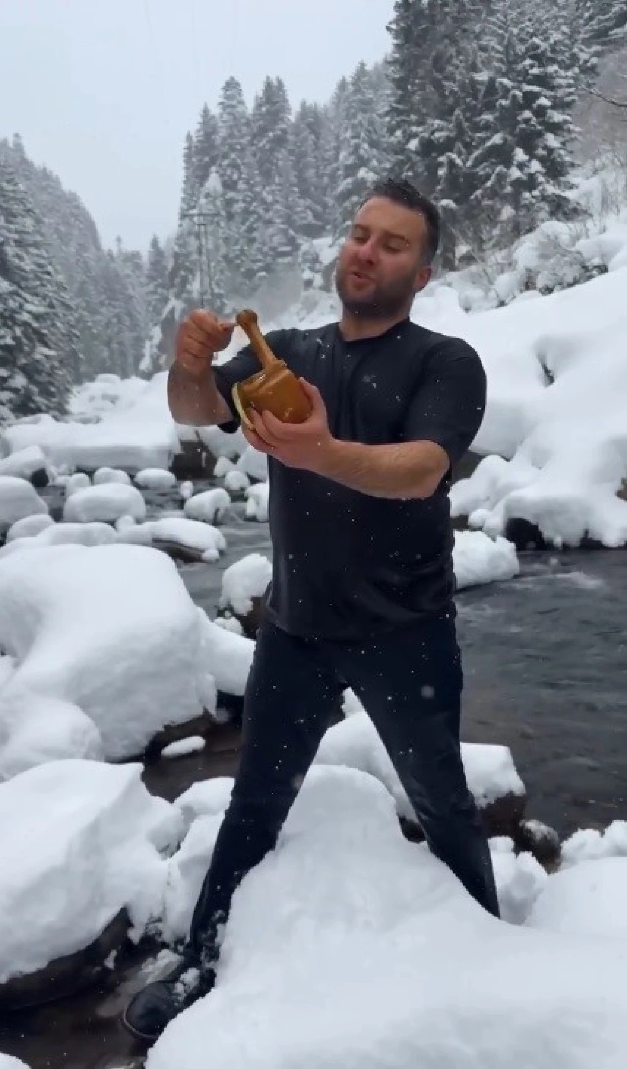 Trabzon’da yöresel ürünler üzerine faaliyet gösteren bir işletmenin sahibi olan İbrahim Muratoğlu, karışım balı reklamı için yaptığı sıra dışı tanıtım yöntemi dikkat çekti. Zorlu hava koşullarına rağmen tanıtım yapmak için kıyafetleri ile kara aldırmadan dereye giren Muratoğlu, karı vücuduna sürerek, derenin içerisine daldı. Suyun içinden çıktıktan sonra tanıtım yapacağı ürünü alan Muratoğlu, ürününün doğallığına ve içeriğine dikkat çekti. Ürününden bir kaşık alan Muratoğlu, bu görüntülerle hem ürününe olan güvenini hem de doğallık vurgusunu ön plana çıkardı. Soğuk hava ve kar yağışına rağmen gerçekleştirilen tanıtım, izleyenler tarafından hem şaşkınlıkla hem de ilgiyle karşılandı.