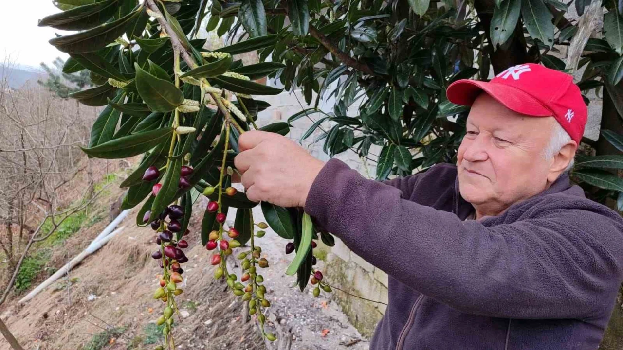 Onur "Kış ayını yaşadığımız bu günlerde ağaçlarımız bize sürpriz yaptı. Bölgemizde taflan olarak bilinen karayemiş ağacımız ve dut ağacımız hem çiçek verdi hem de meyve verdi. Şubat ayında böyle bir manzara görmek gerçekten şaşırtıcı" dedi.