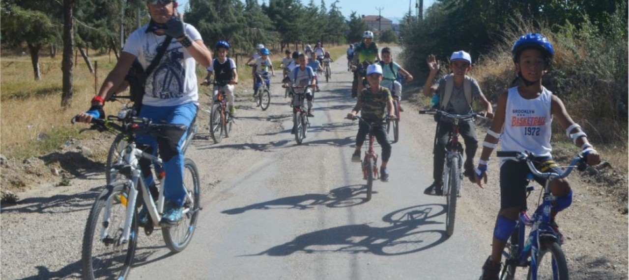 Etkinlikte, Naccar Mahallesi'nden başlayarak Hırka köyüne kadar pedal çeviren çocuklara aileleri de eşlik eti.