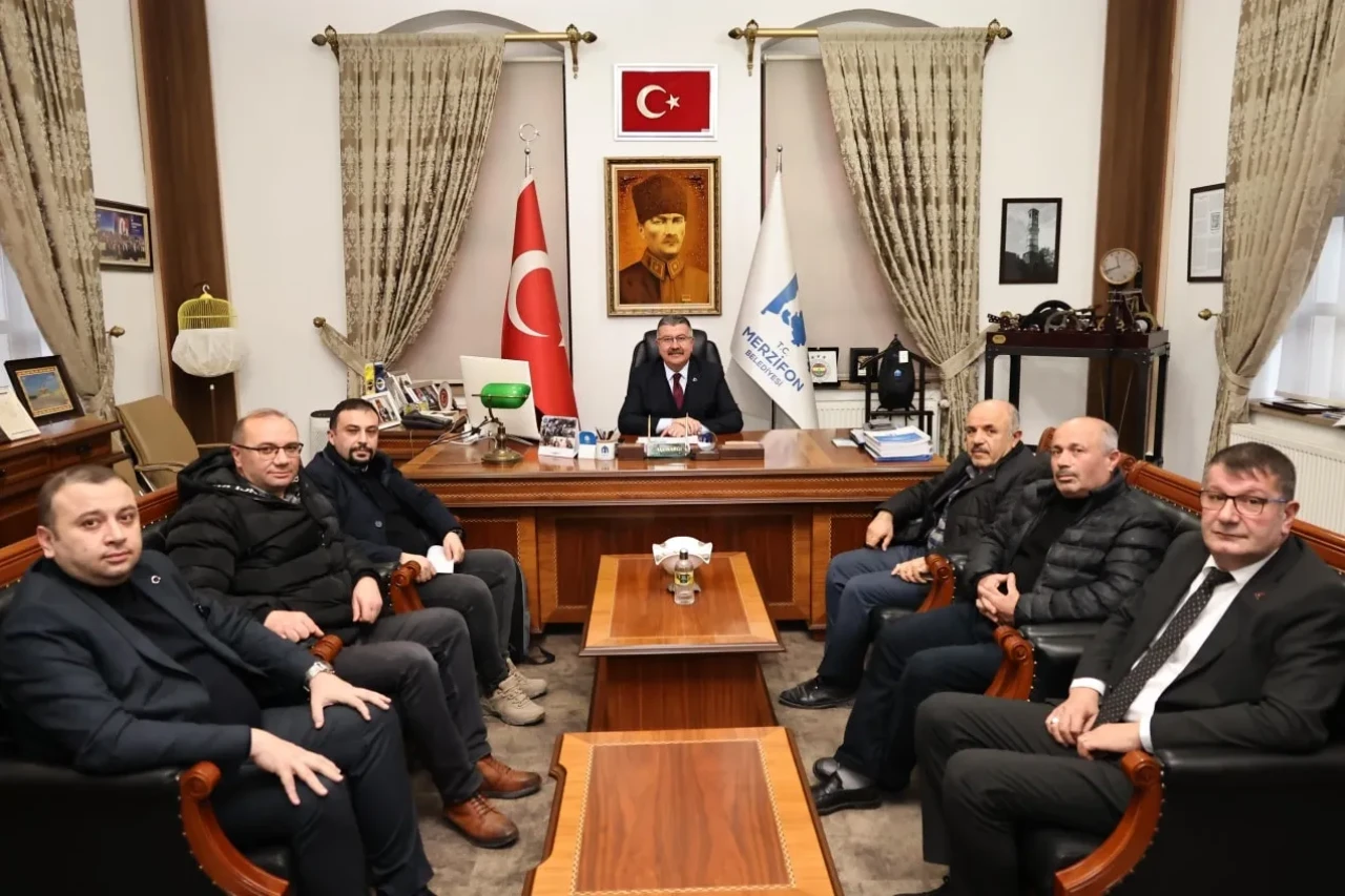 Merzifon Belediyesi, kentteki birlik ve beraberlik anlayışını güçlendiren ziyaretlere ev sahipliği yapmaya devam ediyor. Merzifon Belediye Başkanı Alp Kargı, kıymetli hemşehrileri Mikail Şimşek, Şerafettin Can, Hakan Ertaşmış ve Mithat Başalan’ı belediyede ağırladı.