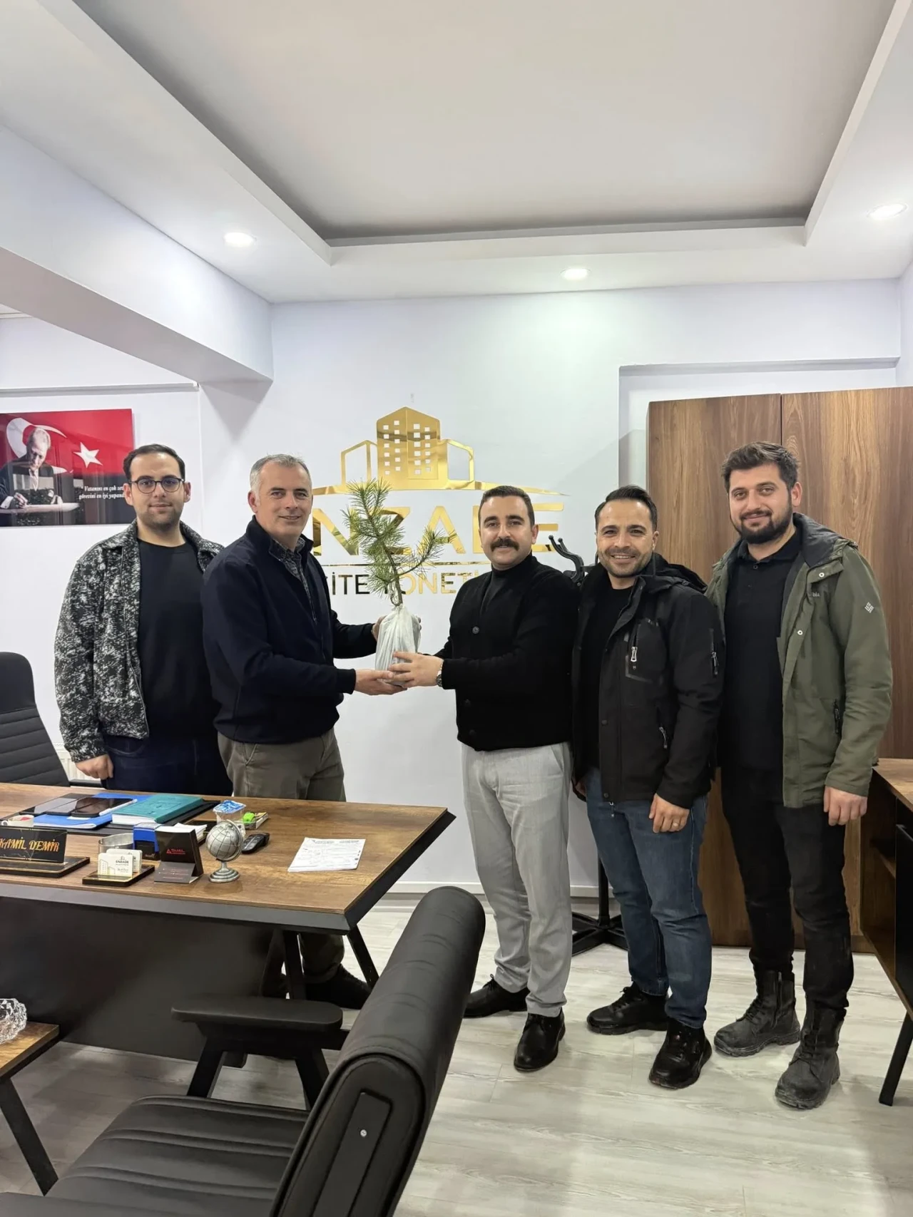 Gerçekleşen ziyarette, yeni iş yerinin Merzifon’a hayırlı olması temennileri iletilirken, dernek tarafından anlamlı bir hediye takdim edildi. Mustafa Koçak, işletme sahibi Kamil Demir’e “geleceğe nefes, birliğe ve berekete kök salması” dileğiyle çam fidanı hediye ettiklerini belirtti.