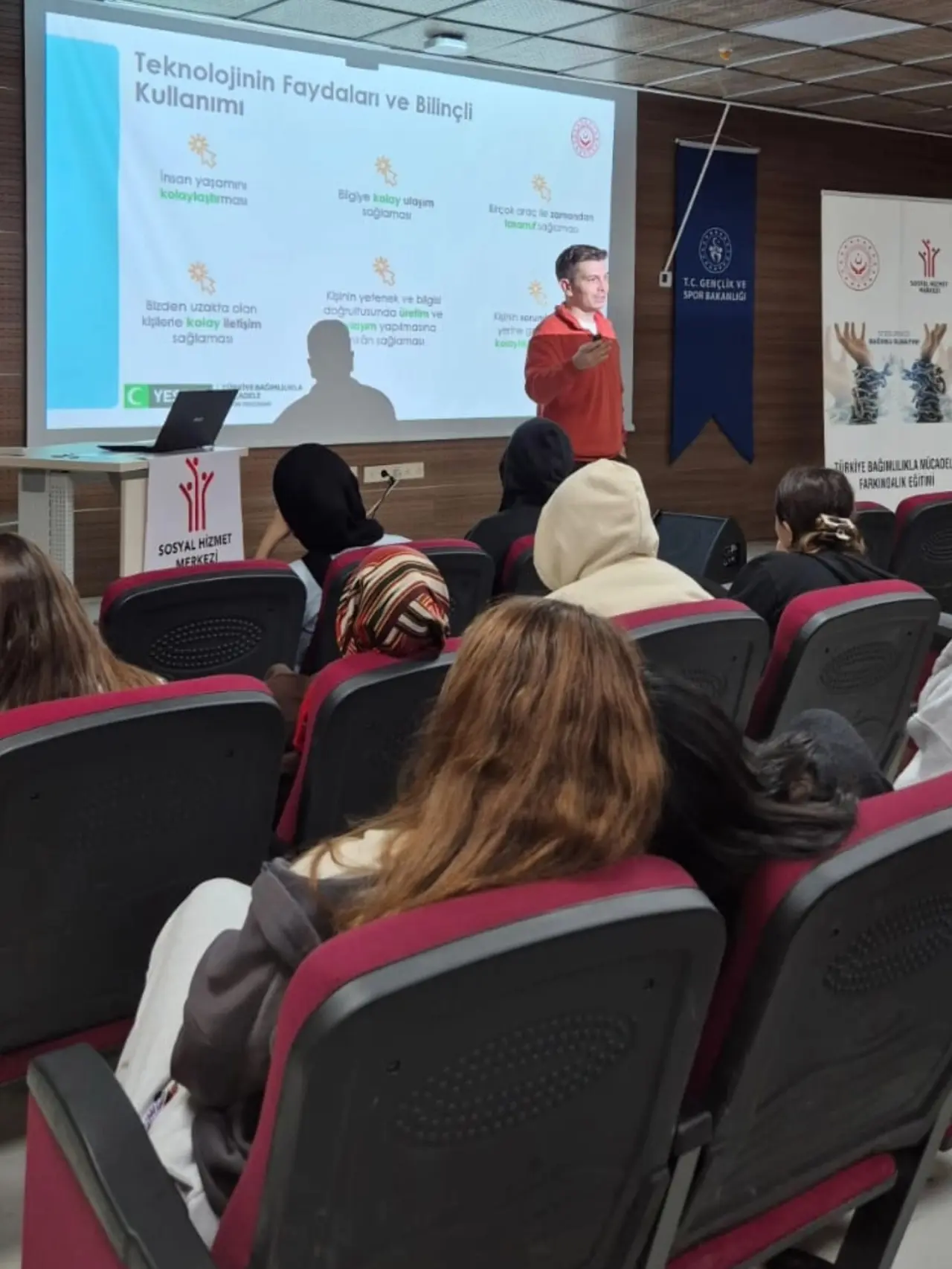 Eğitim kapsamında gençlere, dijital dünyanın bilinçli kullanımı, sosyal medya ve ekran süresi yönetimi, bağımlılık davranışlarının nasıl geliştiği ve tütün ürünlerinin fiziksel-psikolojik zararları hakkında kapsamlı bilgiler aktarıldı. Özellikle teknoloji kullanımının kontrolsüz biçimde artmasının, gençlerin akademik başarıları, sosyal ilişkileri ve uyku düzenleri üzerinde olumsuz etkiler oluşturabileceği vurgulandı.