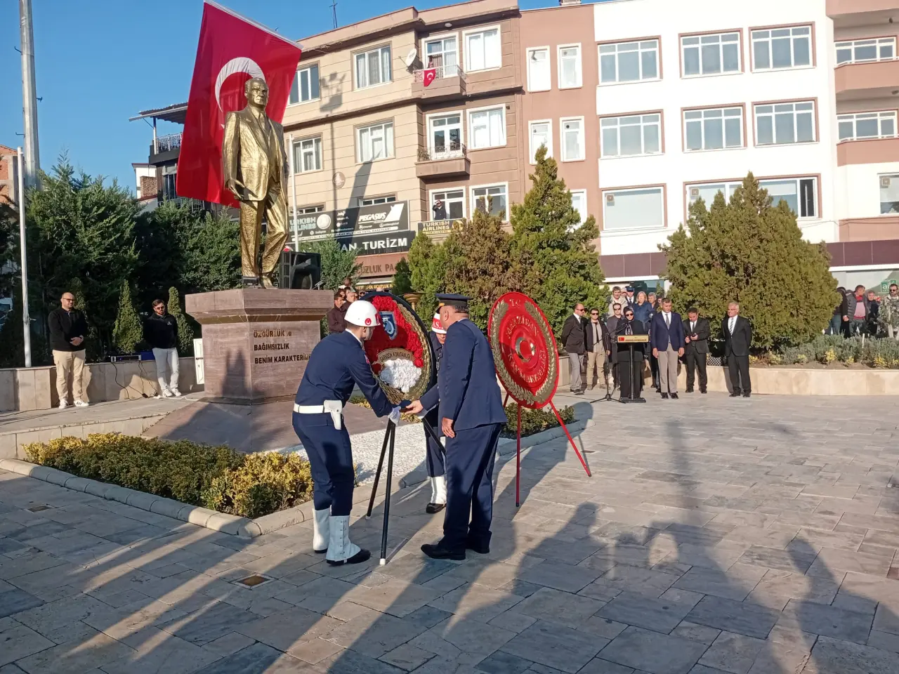 Merzifon Kaymakamı Ahmet Karaaslan, Merzifon 5. Ana Jet Üs Komutanı Tuğgeneral Halil Uğur Serin ve Merzifon Belediye Başkanı Alp Kargı tarafından Atatürk Anıtı’na çelenk bırakıldı. Ardından saatler 09.05’i gösterdiğinde çalan siren sesleriyle birlikte meydanda derin bir sessizlik hakim oldu. Vatandaşlar, protokol üyeleri, öğrenciler ve esnaflar, bulundukları yerde iki dakikalık saygı duruşunda bulunarak Ata’ya olan minnet ve bağlılıklarını gösterdiler.