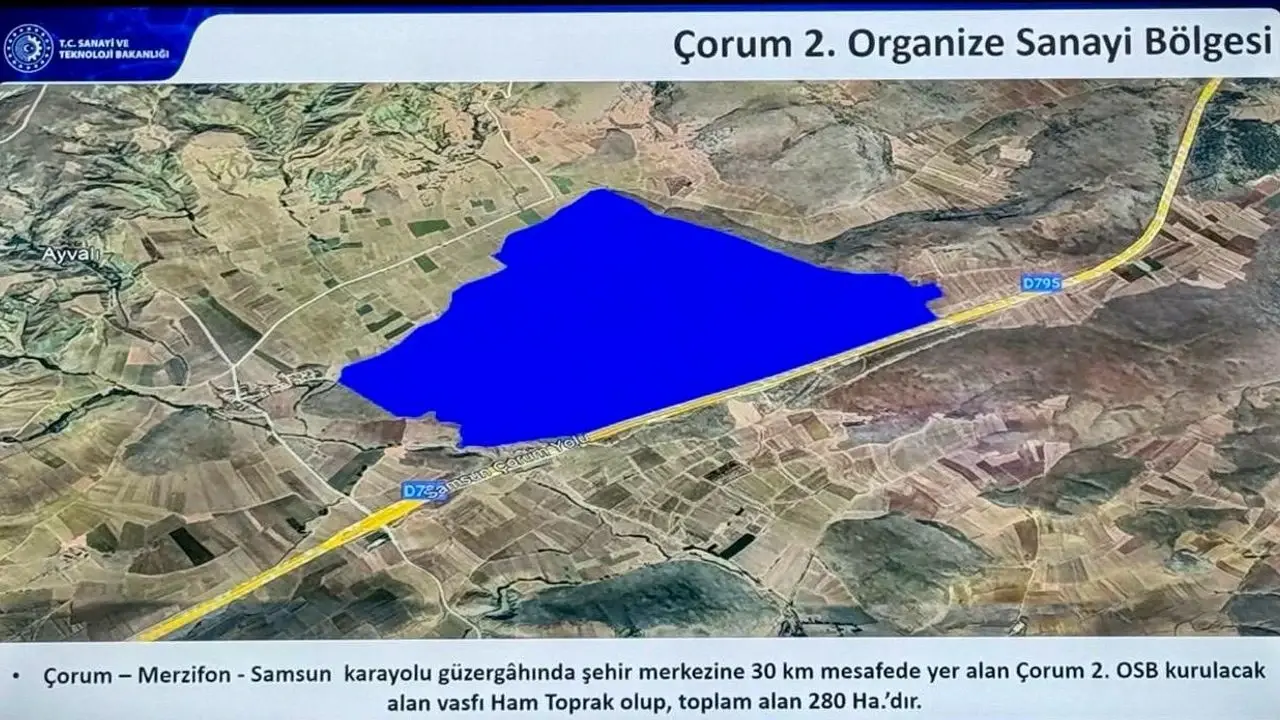 Almaç, 2.800 dönümlük bir alanda hayata geçirilecek Çorum 2. OSB’nin limanlara, devam eden hızlı tren hattına ve Merzifon Havalimanı’na olan yakınlığıyla stratejik bir konumda bulunduğunu belirtti. Merzifon–Samsun yolu üzerinde planlanan bölgenin yalnızca sanayi üretimine değil, aynı zamanda bölgenin lojistik üs olma hedeflerine de büyük katkı sağlayacağını ifade etti.