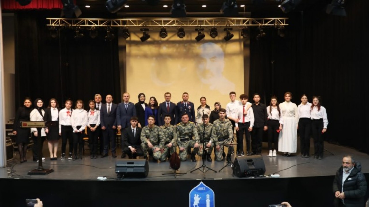 Merzifon Şehit Dursun Özsaraç Anadolu Lisesi tarafından hazırlanıp sunulan ve Akif Gülle Kültür Merkezinde gerçekleştirilen program saygı duruşu ve İstiklal Marşının okunması ile başladı.