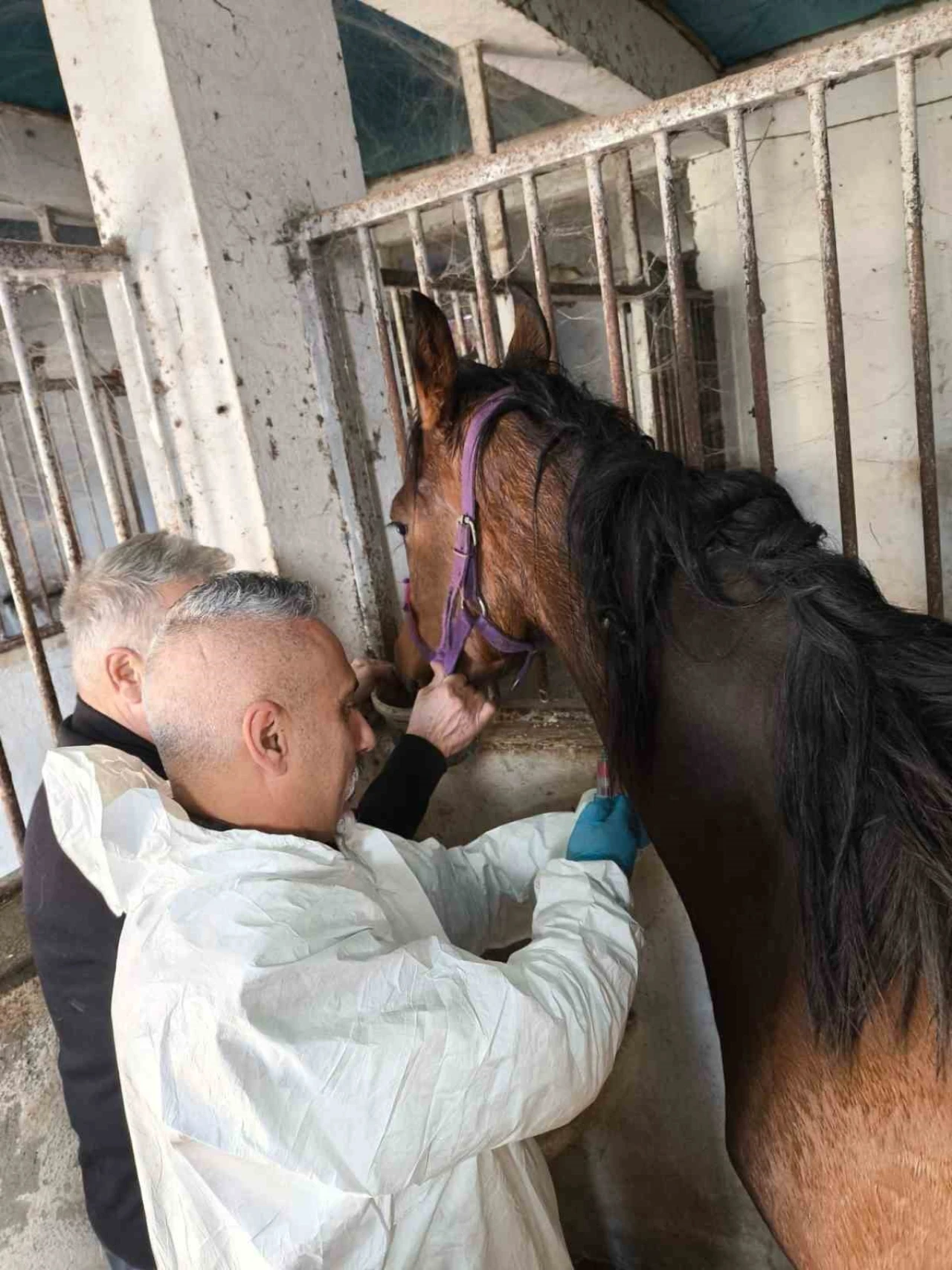 Bartın Tarım Müdürlüğü Hayvan Sağlığı ve Yetiştiriciliği Şube Müdürlüğü veterinerleri tarafından 2026 yılı aşım ve vize işlemleri kapsamında Bartın’da bakımı yapılan ve 4 yaşında bulunan Weeping Tree ismindeki safkan İngiliz atı, sağlık kontrolünden geçirildi. Kontrollerde, yarış atında herhangi bir hastalığa rastlanılmazken, gerekli aşıları da başarıyla yapıldı.