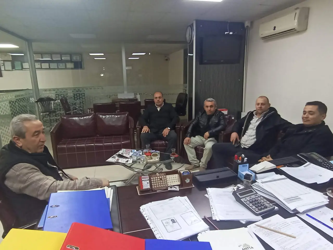 Beraberinde Yönetim Kurulu Üyeleri Şaban Soylu, İsmail Bilgin ve Barış Sayar ile birlikte Haber Merkezimizi ziyaret eden Anahtar Parti Merzifon İlçe Başkanı Uğur Sapan burada İmtiyaz Sahibi Bilal Güley ile görüş alışverişinde bulundu.