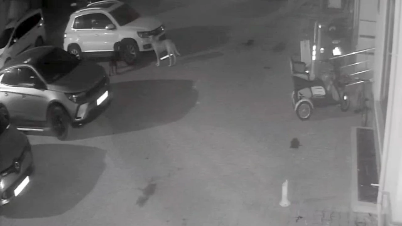 Öte yandan, sokak köpeklerin araca zarar verdiği anlar güvenlik kamerasına yansıdı. Görüntülerde köpeklerin aracın yanına geldiği ve plastik aksamlarını ısırarak parçaladığı görülüyor. Köpekler bir süre sonra aracın yanından uzaklaşıyor.