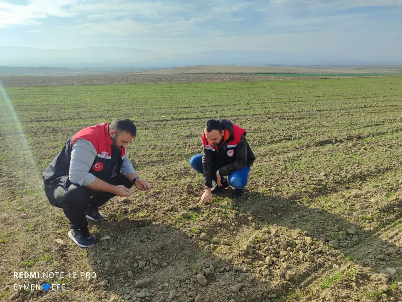 Cürlü Köyü’ne yapılan ziyarette teknik personel, buğday çıkışının sağlık durumu ve bitki gelişim evrelerini yerinde inceledi. Ekim sonrası ilk çıkışların zamanlaması, çimlenme oranları, bitki sıklığı, toprak nemi ve topraktaki besin elementlerinin etkileri değerlendirilerek üreticilere sahada birebir bilgilendirme yapıldı. Özellikle hava koşullarının buğday üzerindeki olası etkileri, kök gelişimi ve ilerleyen dönemlerde karşılaşılabilecek hastalık riskleri hakkında önemli uyarılarda bulunuldu.