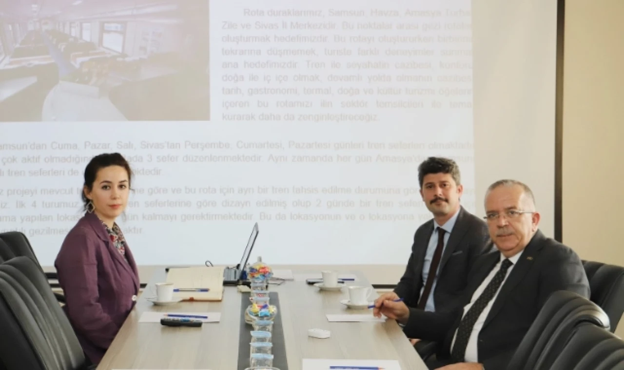 Ziyaret çerçevesinde gerçekleştirilen toplantıda, “Kurtuluş Ekspresi Projesi” çerçevesinde Samsun, Havza, Amasya, Turhal, Zile ve Sivas İl Merkezi arası gezi rotaları oluşturmak ve turistlere farklı deneyimler sunmak olduğunu söyleyen Çolak, tren ile seyahatin cazibesini ortaya çıkarmak istediklerini söyledi.