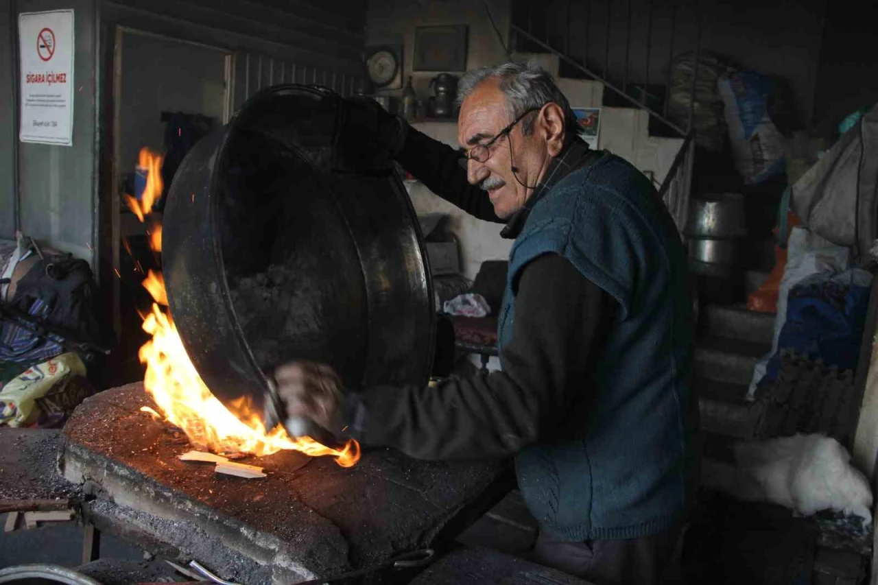 Çorum’da 10 yaşında adım attığı kalaycılık mesleğini 63 yıldır aralıksız sürdüren Süleyman Özkılıç, gelişen teknolojiyle birlikte unutulmaya yüz tutan zanaatını yaşatmak için adeta zamana karşı direniyor.