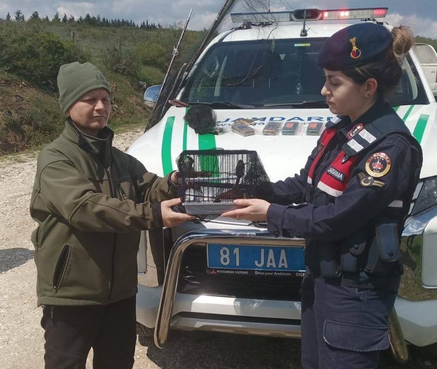 Düzce’de jandarma ekipleri denetimlerini sürdürüyor. İl Jandarma Komutanlığı Merkez İlçe Jandarma Komutanlığı ekipleri tarafından ormanlık alan içerisinde kontrol yapıldı. Yapılan kontrollerde yasak avlanma yapan şahıs tespit edilerek idari para cezası uygulandı. Ele geçirilenler doğa koruma ekiplerine teslim edildi.