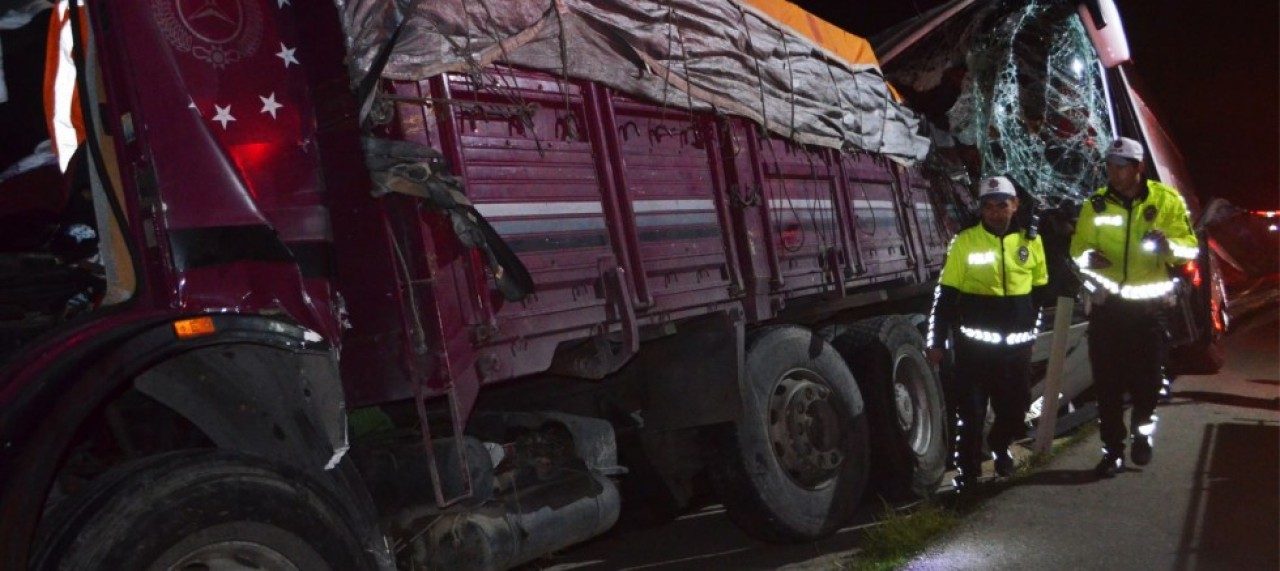 İstanbul'da Giresun'un Alucra ilçesine giden İbrahim Bulut yönetimindeki Rota Turizme ait 34 TN 60 28 plakalı yolcu otobüsü, Kayadüzü mevkisinde Selahattin İnanır'ın kullandığı 52 ADJ 308 plakalı tırla çarpıştı.