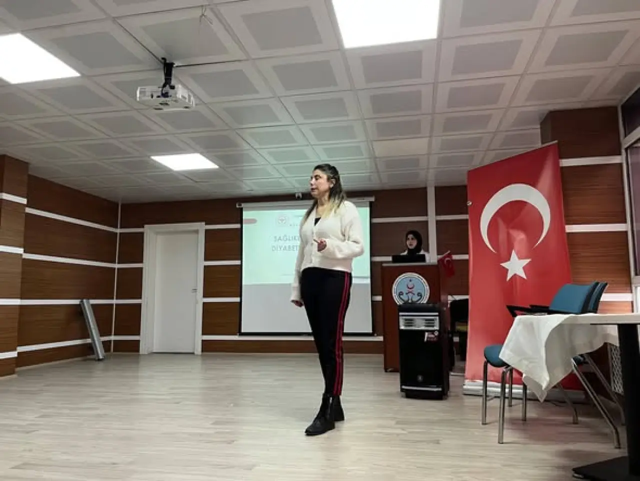 Diyabet başlığında, hastalığın ne olduğu, belirtileri ve korunma yolları öğrencilere yaş gruplarına uygun bir dille aktarıldı. Özellikle şekerli içeceklerin ve işlenmiş gıdaların aşırı tüketiminin uzun vadede sağlık sorunlarına yol açabileceği ifade edildi. Sağlıklı beslenme alışkanlıklarının diyabet riskini azaltmadaki rolü örneklerle pekiştirildi.