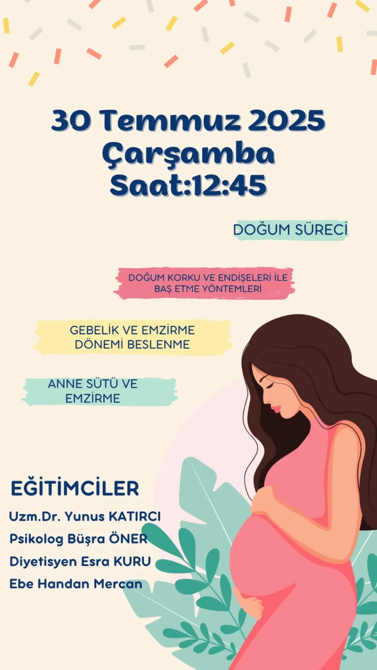 Etkinliğin ücretsiz ve herkese açık olduğu belirtilirken, özellikle anne adaylarının, yakınlarının ve doğum süreciyle ilgilenen bireylerin katılım sağlaması bekleniyor.