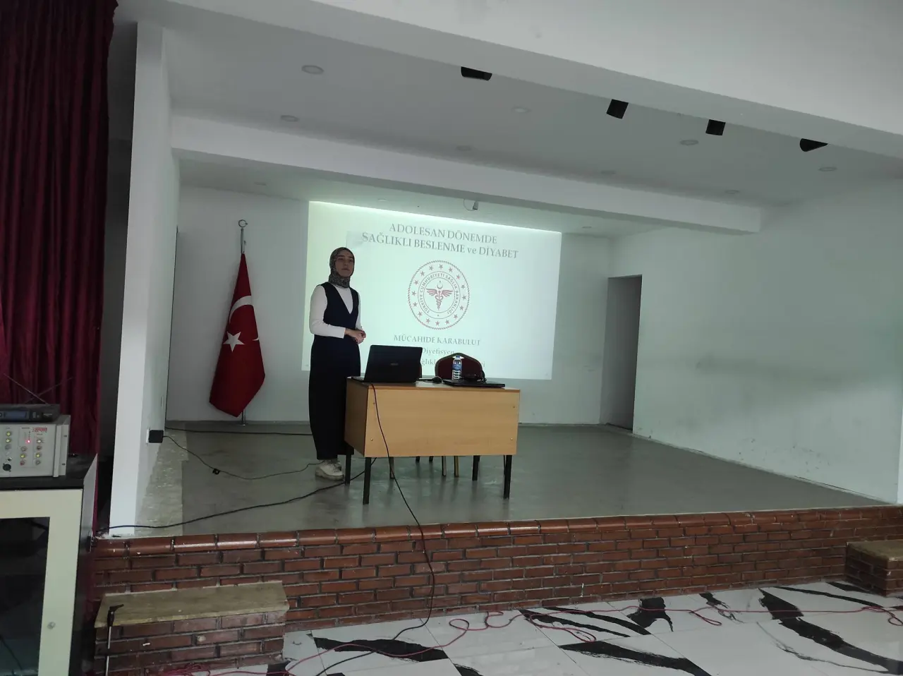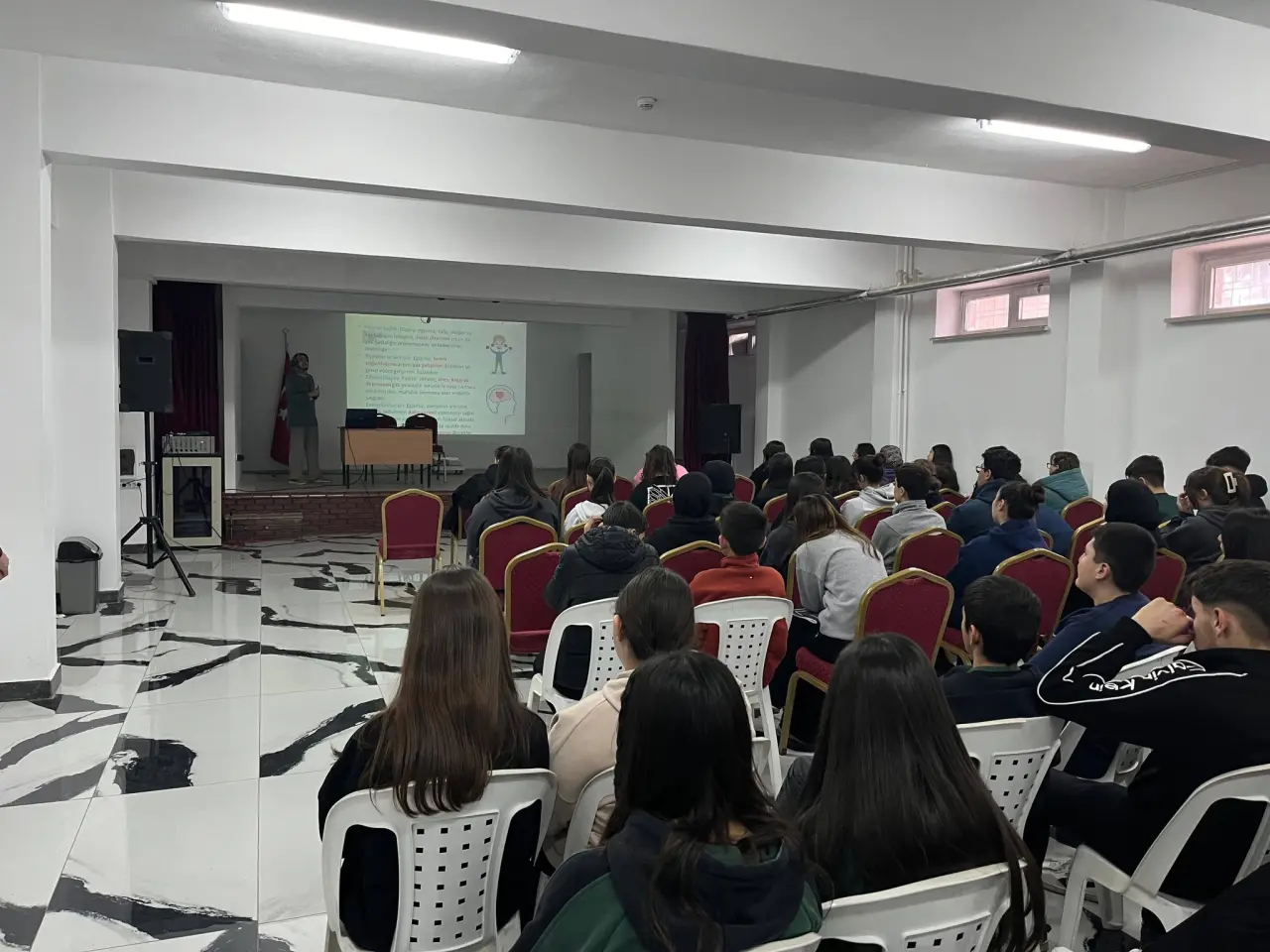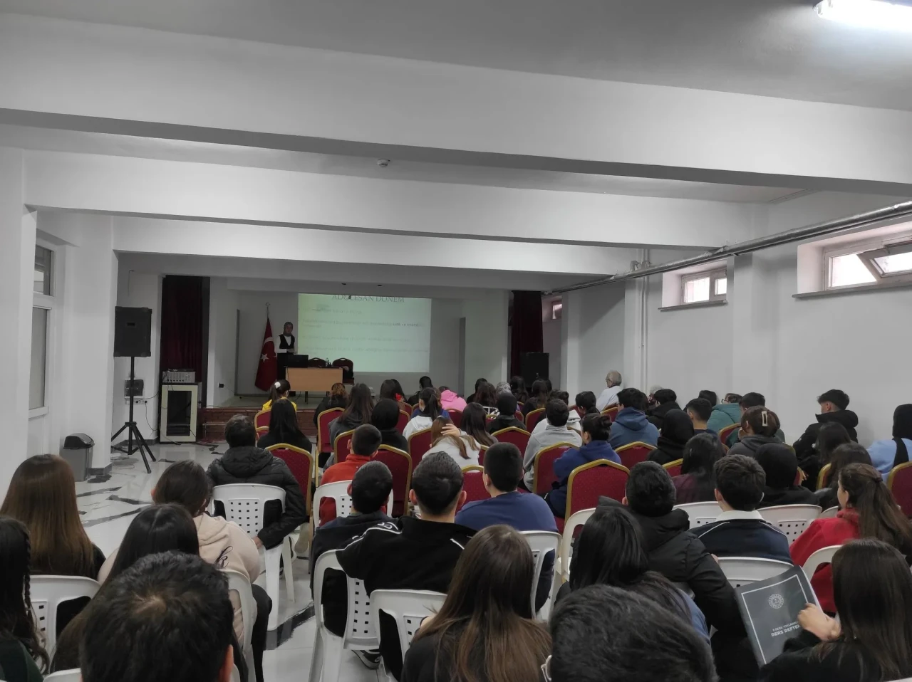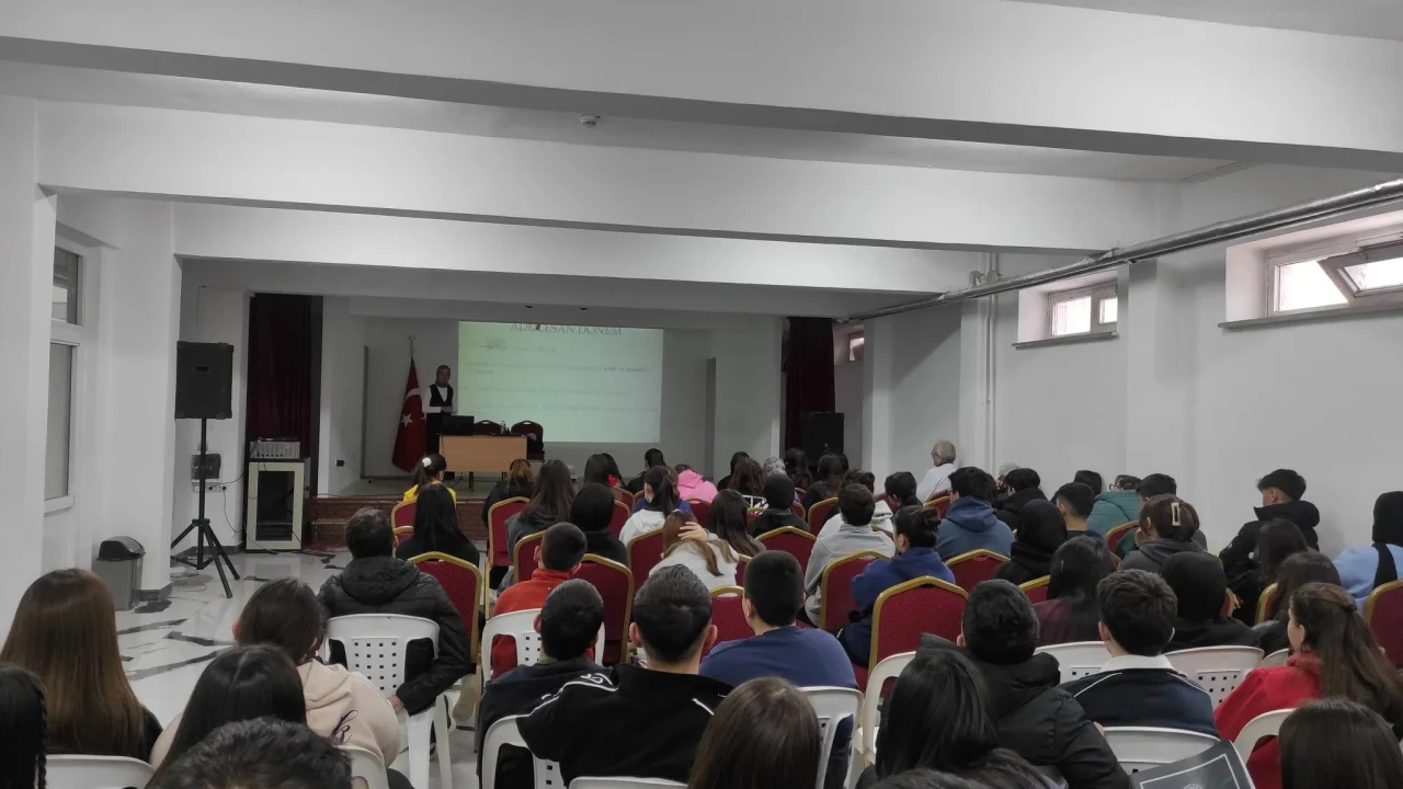 Programda ilk olarak Diyetisyen Mücahide Karabulut söz alarak sağlıklı beslenmenin bireyin yaşam kalitesi üzerindeki etkilerini anlattı. Özellikle genç yaşlarda kazanılan doğru beslenme alışkanlıklarının ileriki yaşlarda diyabet, obezite ve kalp-damar hastalıkları gibi kronik rahatsızlıkların önlenmesinde kritik rol oynadığını vurgulayan Karabulut, dengeli bir tabağın nasıl oluşturulması gerektiğini örneklerle açıkladı. Karbonhidrat, protein ve yağ dengesinin önemi, şekerli ve işlenmiş gıdaların tüketiminde dikkat edilmesi gereken noktalar öğrencilere detaylı şekilde aktarıldı.