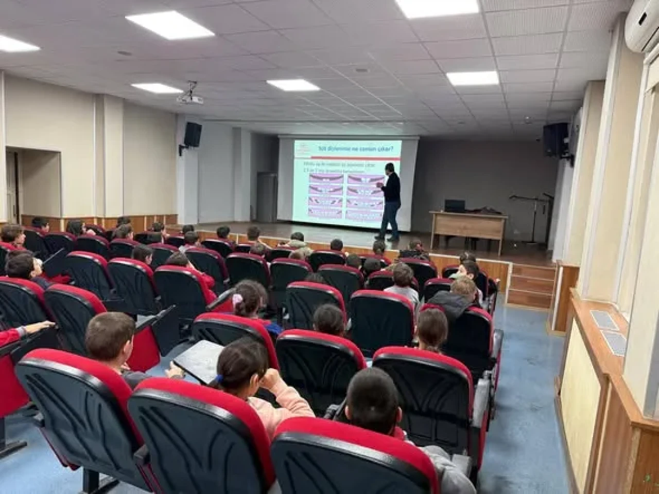 Program kapsamında Diş Hekimi Fatih Çekin, ağız ve diş sağlığının erken yaşlarda kazanılan alışkanlıklarla doğrudan ilişkili olduğunu vurguladı. Diş çürüklerinin nedenleri, ağız bakımının ihmal edilmesi durumunda ortaya çıkabilecek sağlık sorunları ve düzenli diş kontrollerinin önemi öğrencilere sade ve anlaşılır bir dille aktarıldı. Sunum sırasında, şekerli ve asitli gıdaların diş sağlığı üzerindeki olumsuz etkilerine de dikkat çekildi.
