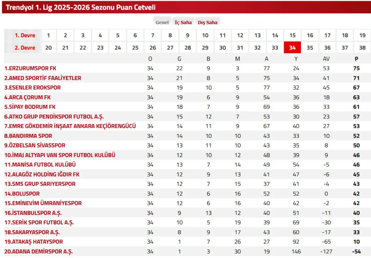 Bu sonuçla Erzurumspor, Süper Lig hedefi doğrultusunda büyük bir avantaj elde ederken, İstanbulspor için işler zorlaştı. Ligde son haftalara girilirken alınan bu galibiyet, Erzurumspor’un üst lig yolunda ne kadar iddialı olduğunu bir kez daha gösterdi.