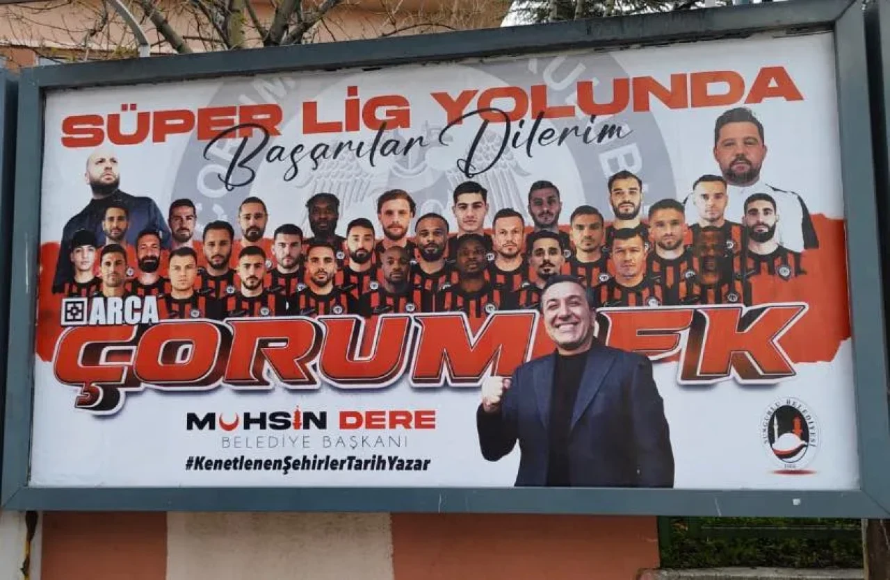 ARCA Çorum FK’nın Süper Lig hedefi doğrultusunda şehir genelinde dikkat çeken bir destek kampanyası hayata geçirildi. Milliyetçi Hareket Partisi Genel Sekreter Yardımcısı, Çorum Milletvekili Vahit Kayrıcı ile Çorum FK Onursal Başkanı ve Sungurlu Belediye Başkanı Muhsin Dere öncülüğünde Sungurlu’daki tüm billboardlara “Süper Lig yolunda başarılar Çorum FK” pankartları asıldı.