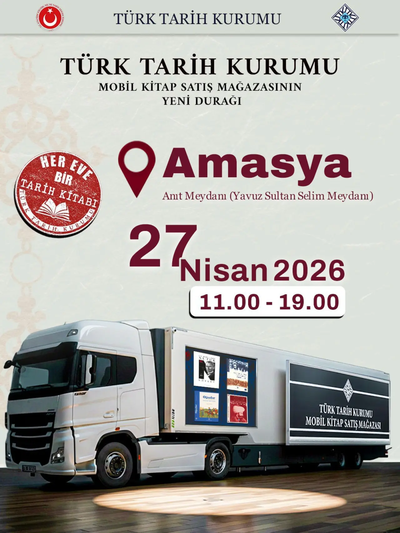 Amasya İl Kültür ve Turizm Müdürlüğü, kültür ve edebiyat tutkunlarını sevindirecek anlamlı bir etkinliğe imza atıyor. “Tarih kokan sayfalar bu kez Amasya’da sizlerle buluşuyor” sloganıyla duyurulan mobil mağaza etkinliği, 27 Nisan 2026 tarihinde Anıt Meydanı’nda kitapseverlerle buluşacak.